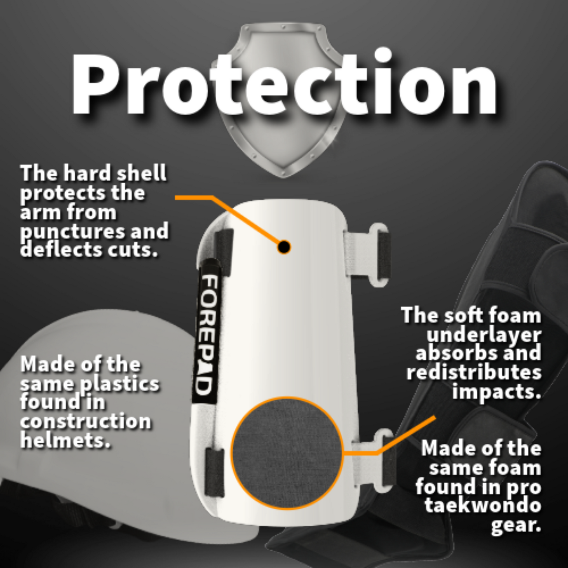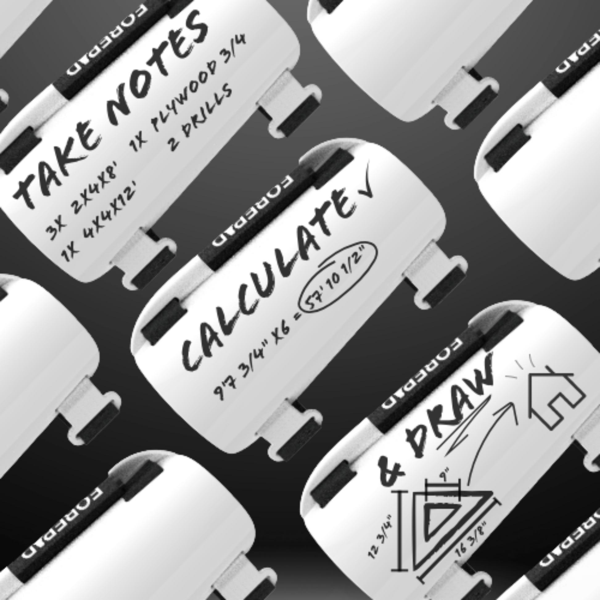 The Forepad is a revolutionary, ergonomic wearable notepad designed specifically for construction workers, by construction workers. Built to fit snugly on your forearm, the Forepad gives you quick, hands-free access to your notes on a durable, dry-erase surface that’s perfect for jotting down measurements, calculations, reminders, or sketching simple diagrams on the go.
